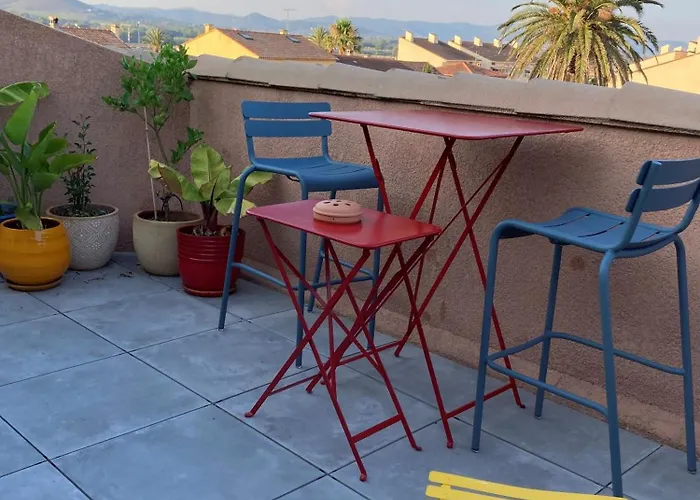 L'Air Marin ferielejlighed byder på lækker overnatning for 3 gæster i Hyères. Stedet består af 2 soveværelser og 1 badeværelser.