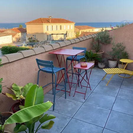Das 1-Zimmer-Apartment Ferienwohnung L'Air Marin liegt einen 18-minütigen Spaziergang vom Strand Plage du Pentagone entfernt und verfügt über einen Balkon und einen Ankleidebereich. Auf einer Terrasse dieses Apartments können die Gäste entspannen und einen Ausblick aufs Meer genießen.