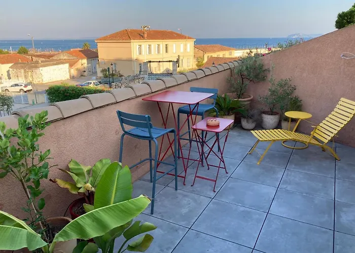 El L'Air Marin Apartamento Hyères tiene terraza y está situado a una distancia de 200 metros de Port Pothuau. Para los que viajen en coche, este apartamento de 24 m^2 ofrece un aparcamiento cerca.